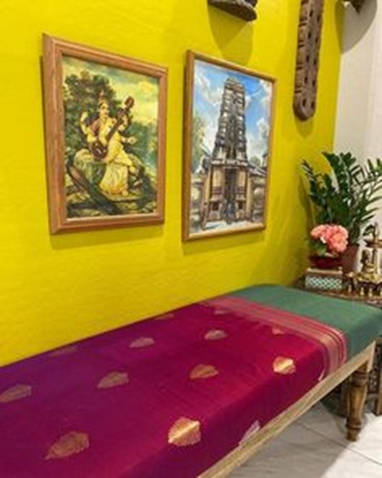 “Something different – Something unique” is what we always desire in our home interiors. Reusing a silk saree by framing its rich pallu or body of the saree gives a personal touch to the piece. Border of the same saree around pallu or different color border elevates the piece further. The piece goes well on top of a console, behind the sofa, above crockery unit or any plain wall, which becomes a style statement.