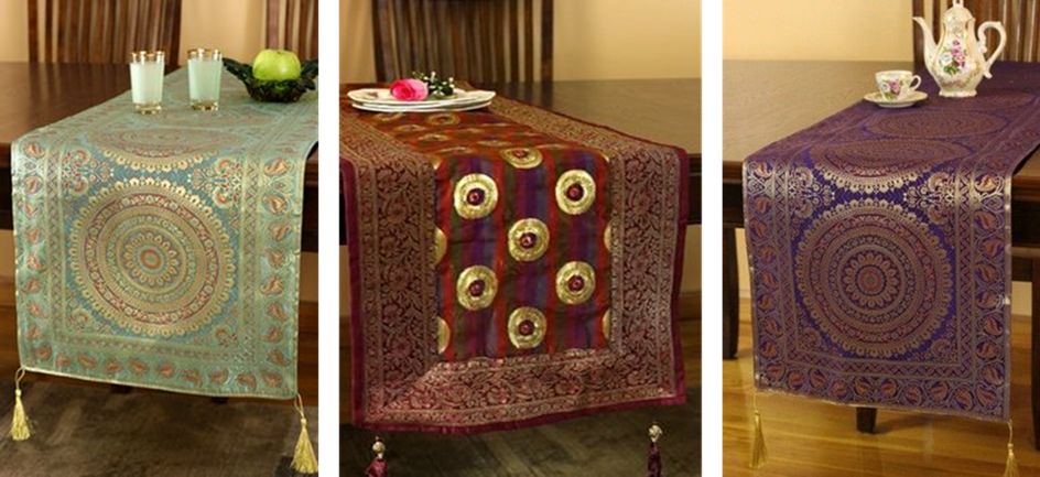 Runners makes a striking difference to any dining table when you are setting the table for dinner. If theses runners are made from reused saree there is an added drama to the whole table and becomes a beauty factor for your home.