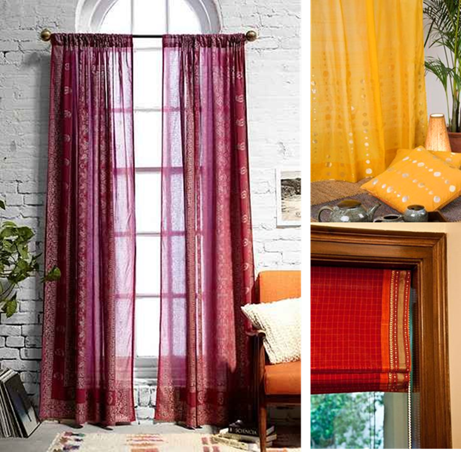 Small ideas like changing the window treatments brings freshness and newness to the room. Especially if they are made from reused sarees. Upcycling or reusing a product always feels light on your pocket and yet gives the desired look.